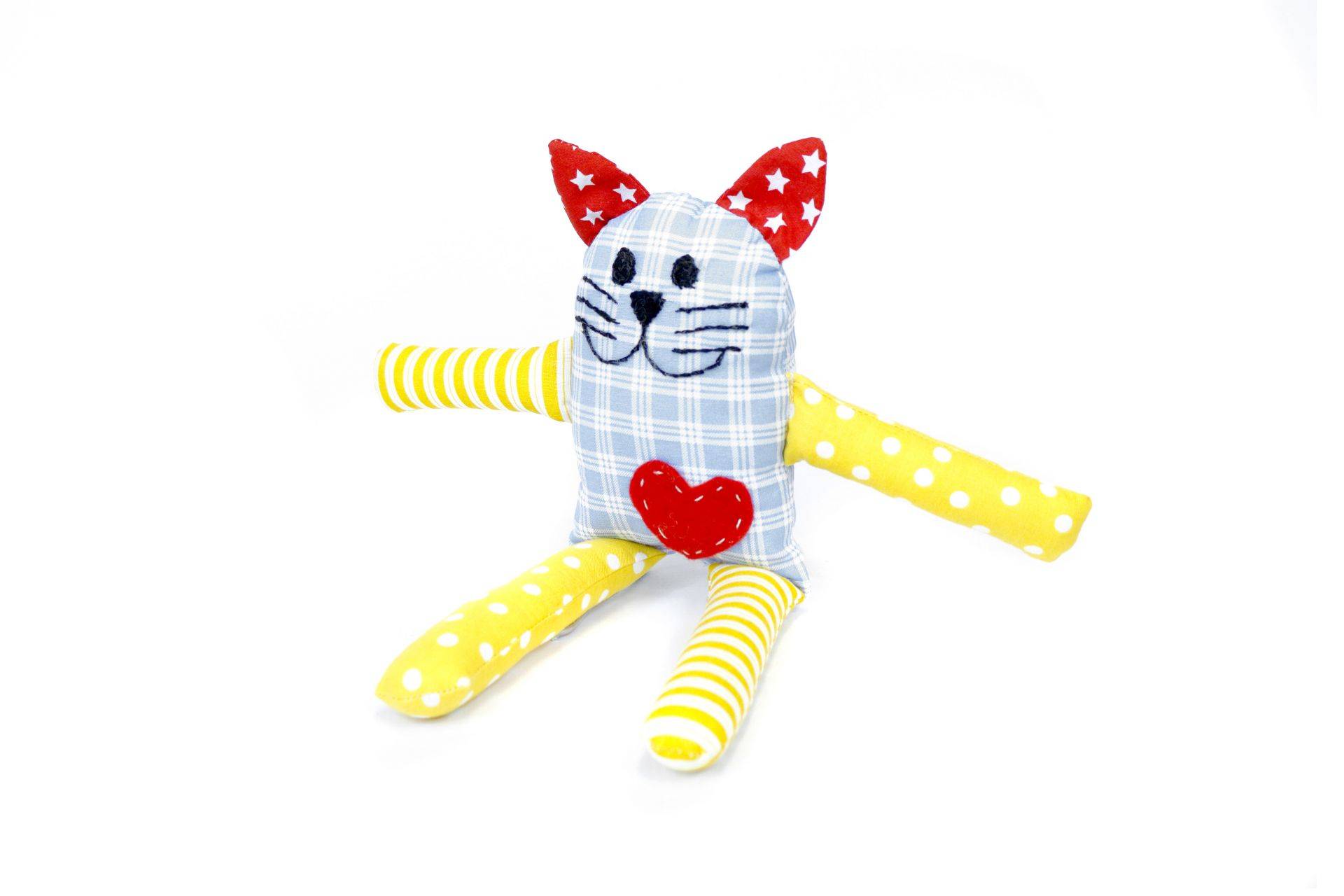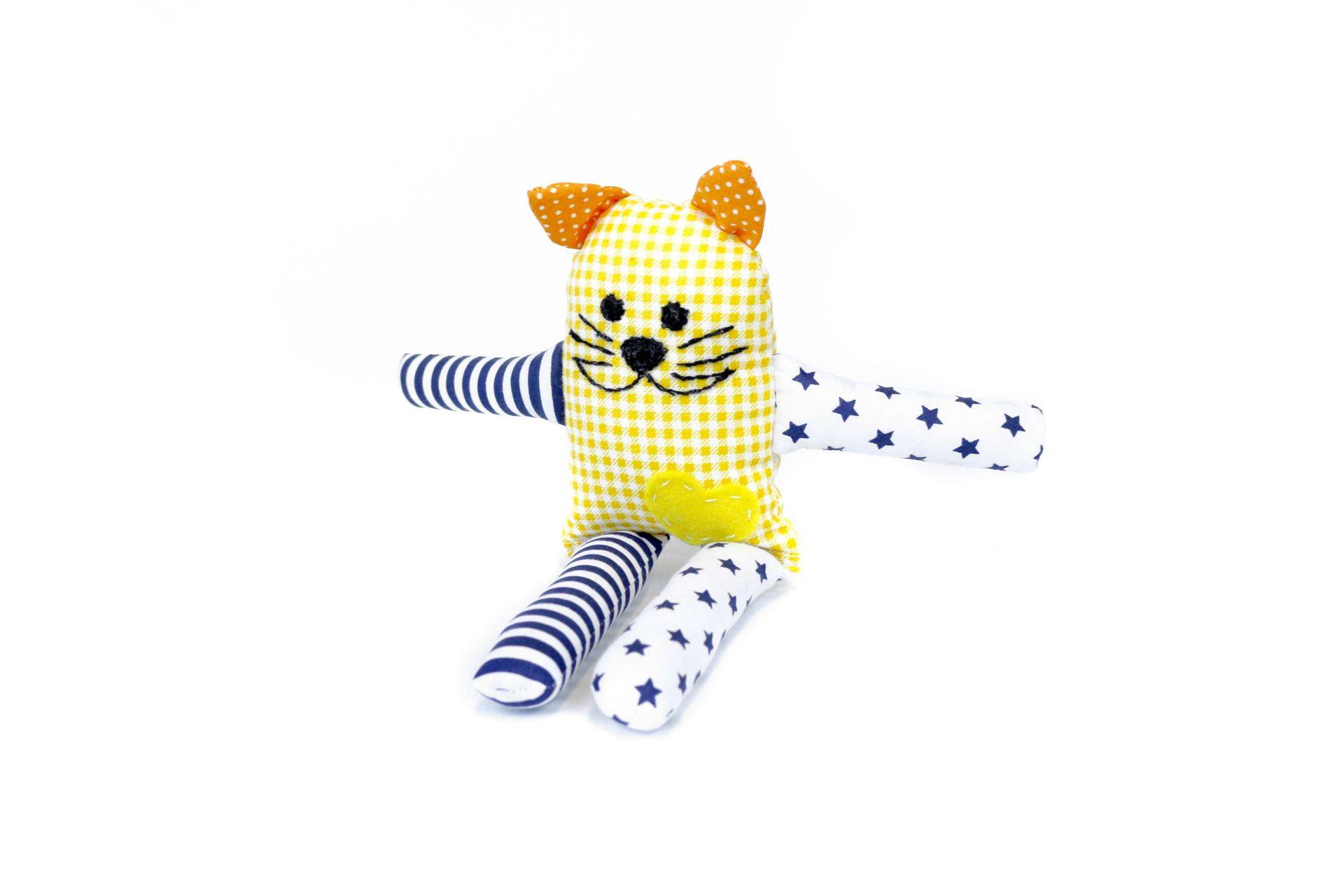 Kočka Micka (#7)Textilní hračkyKód: sal_kocicakPoužitý materiál: 100% bavlna, filc, výplň PES kuličky Velikost: 27 cm Fotky Dotaz Jméno a příjmení Email Telefon Zpráva Odeslat zprávu